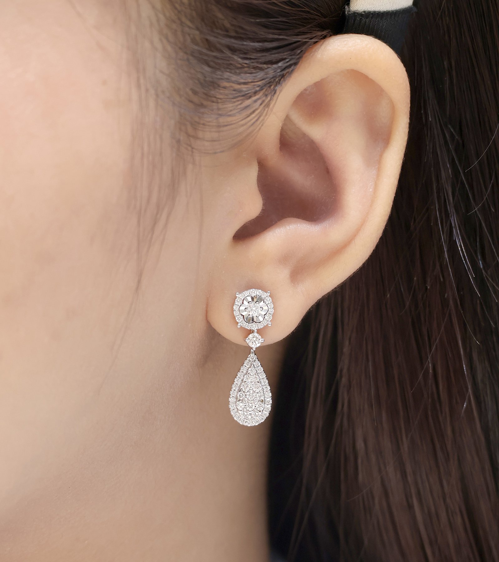 – Material: emas putih 18K (750)